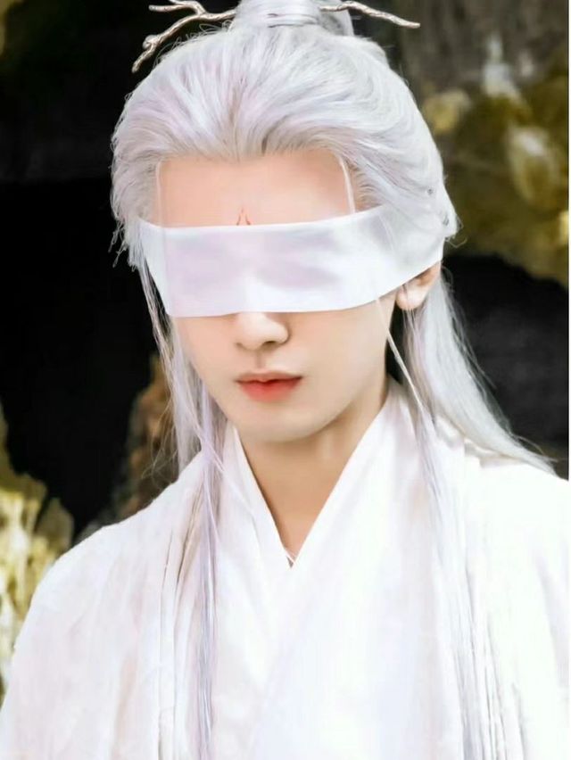 一位青年身着白衣,看上去还是单薄。肩上斜挎着一个箱子,眼睛上蒙着白绫,却也能看出来是个俊俏的人儿。