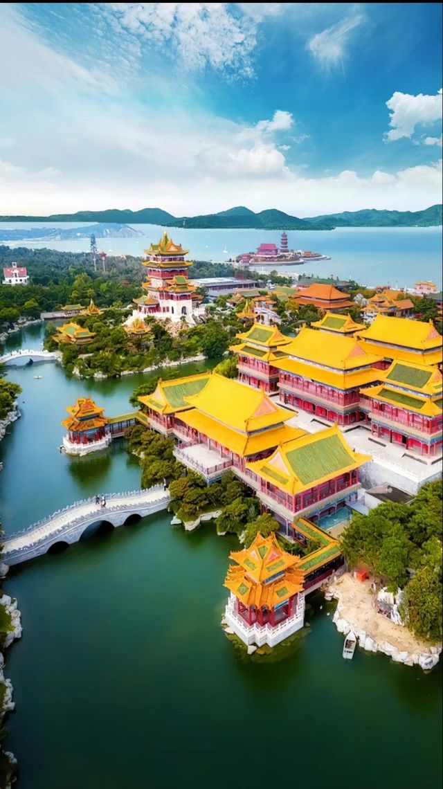 真真是八面玲珑、碧瓦朱檐、碧瓦朱甍、层台累榭、层楼叠榭、尺椽片瓦,各种风景,各个样式都有。