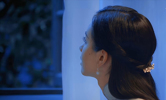 淡淡的忧伤与隐隐的憧憬在她眉梢眼角蔓延,这情绪如同夜雾般轻柔地晕染开来,为这静谧的夜晚添上了一抹哀婉诗意……