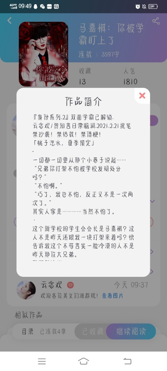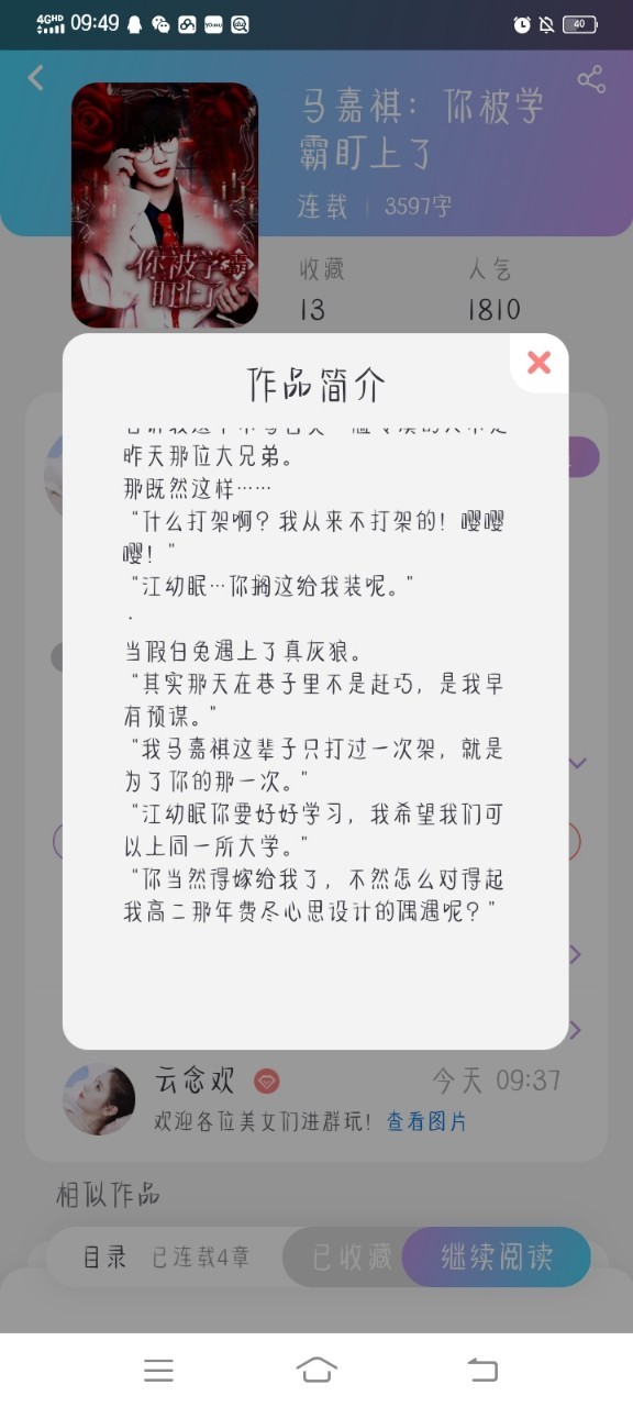 各位美女们可以打开话本APP,搜索云念欢,点个关注,然后点开《马嘉祺:你被学霸盯上了》这本书,顺便点个收藏,打个卡,报个数,云念欢会永远爱你们的。