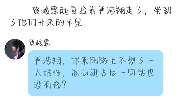 贺峻霖:你可能不知道吧,我不知道轩轩有没有和你说过,初三那年,因为你我和轩轩吵了一架,也算不上吵架,只不过是我发的一顿牢骚而已