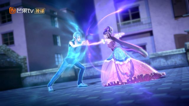 一个蓝色的护盾把王默保护在内,接着水王子出现在她的背后,手放在她的面前。