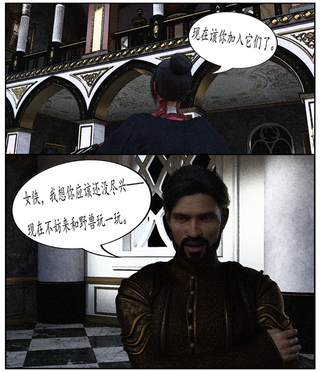 菲利普斯双臂叠于胸前,扬唇:“女侠,我想你应该还没尽兴——现在不妨来和野兽玩一玩。”
