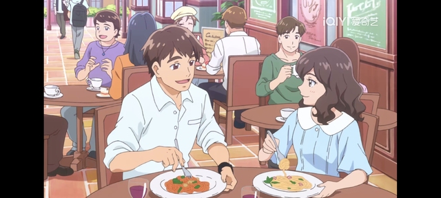 场景一转,变成了那个女孩吃饭团的场景