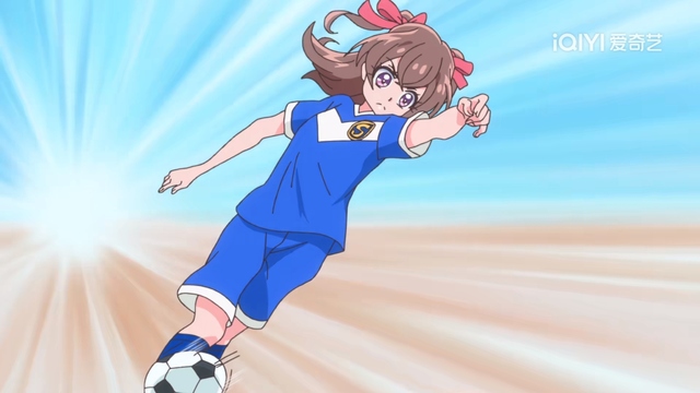 这时,画面一转,一个女孩正在踢球