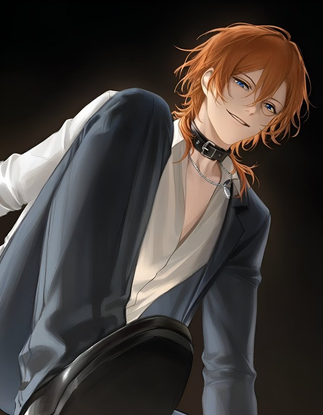 中也站在太宰治身后,双手环胸,眼神里带着一丝冷淡和警惕。他看着那个年轻学生,微微皱了皱眉。那学生长得并不出彩,但他的发色却与中也一致,是一种温暖的橘色。在昏暗的路灯下,那发色显得格外醒目。