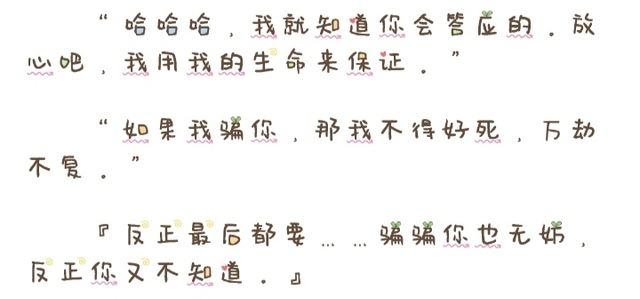 巾巾:“那还不是因为你说谎。”