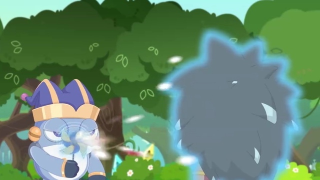 催眠怪东张西望了起来,随后在一片空地上看见了正在练习的粒粒,于是便决定拿她试验。