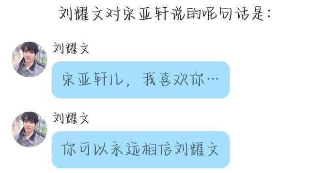 刘耀文(阿文):宋亚轩儿,我喜欢你…