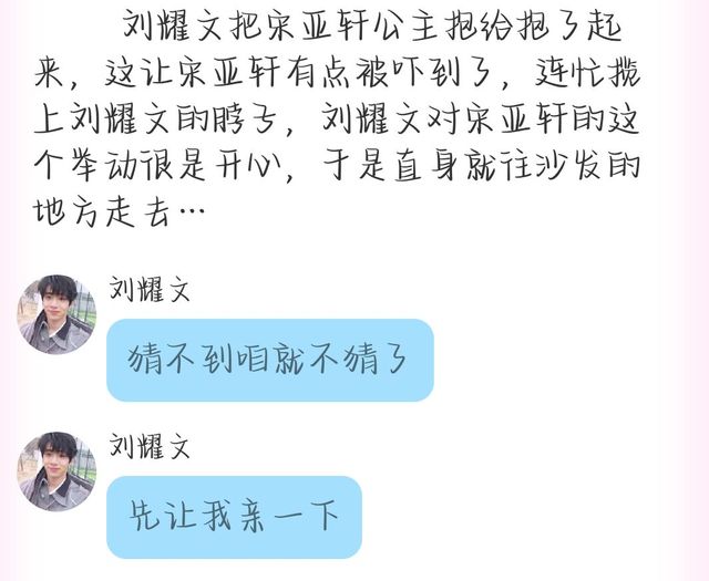 刘耀文(阿文):嗨,宋亚轩儿,我发现你现在是越来越爱发小脾气了