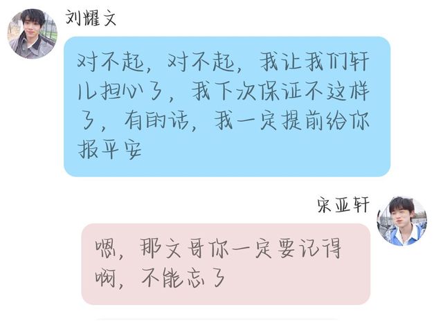 宋亚轩(芽芽):嗯,那文哥你一定要记得啊,不能忘了