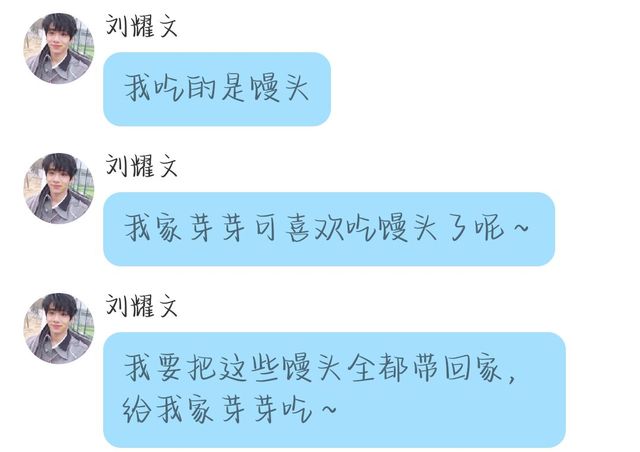 刘耀文(阿文):我要把这些馒头全都带回家,给我家芽芽吃~
