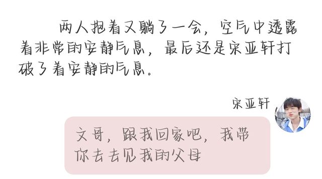 宋亚轩(芽芽):文哥,跟我回家吧,我带你去见我的父母