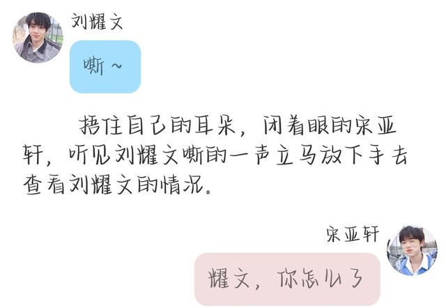 宋亚轩(芽芽):因为,你现在根本不是,我喜欢的呢个刘耀文