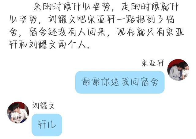 刘耀文吧宋亚轩放躺在床上,然后就离开宿舍回自己的宿舍了。