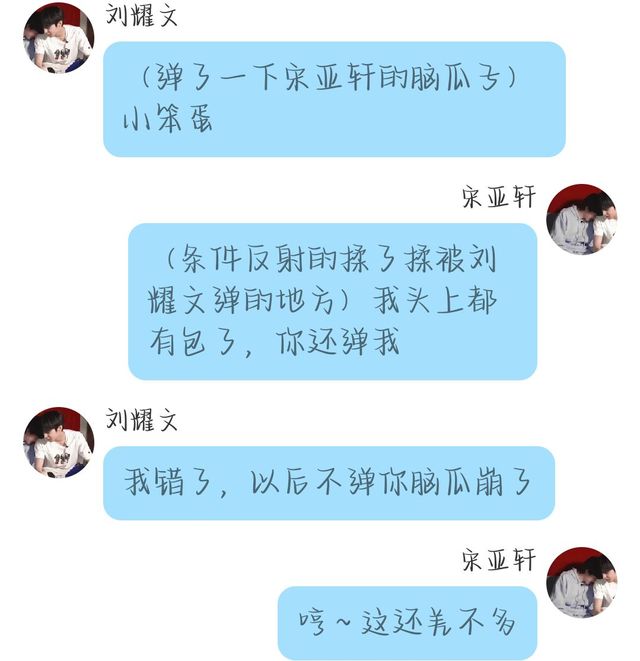 刘耀文:(揉了揉宋亚轩的头发)嗯,乖