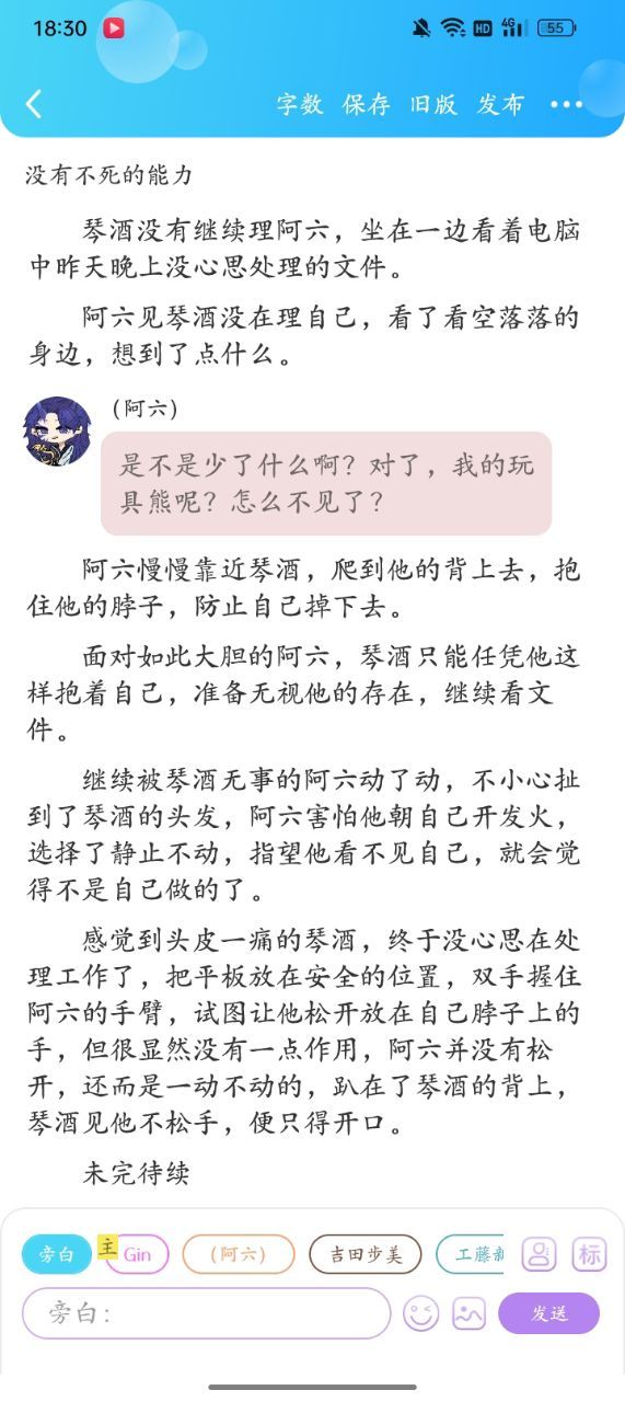 衣柜边找到玩具熊的阿六依旧气呼呼的,随手抓起玩具熊的脚,将它从柜子中拖到了床边,抬头看着还在处理事情的琴酒,失落的好下了头,拽着玩具熊爬上床,在床上的某个地方找个位置躺了下去,委屈的抱着玩具熊,至于阿六为什么突然这么委屈,但是因为琴酒的缘故,阿六觉得琴酒可能开始嫌他麻烦,不想养他这个烦人精了,才会委屈的抱着玩具熊,但抱着抱着可能是因为玩具熊太柔软了,阿六委屈的睡着了。