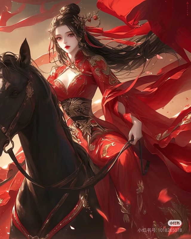 此时,陆幽兰穿着一身红色的作战服,骑着从敌人手中缴获而来的赤兔马,拿着一杆霸王枪,在前面带着后面的娘子军,走上了演武场,